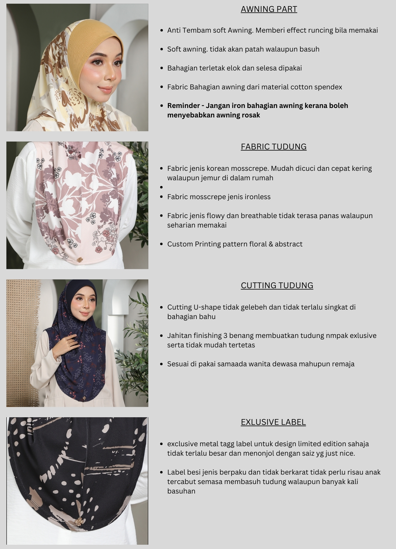 The SARUNG PRINTED ERINA instant hijab features U Shape body cutting, sits nicely on shoulder and not sag offering an exclusive fit. Complete with an exclusive metal label, this special edition piece adds an elegant touch to your Muslim fashion collection. Upgrade your look with this stylish yet practical instant hijab!
