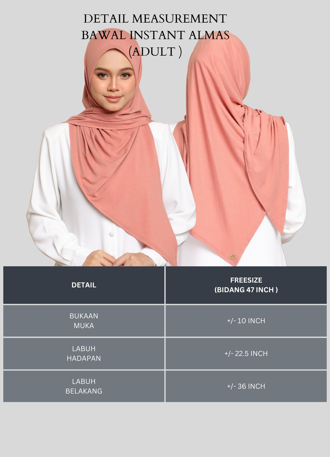 Elevate your everyday style with this AMINIE HIJAB TUDUNG BAWAL INSTANT ALMAS COTTON DEWASA. Wear it in different styles to suit your creativity and preference effortlessly.