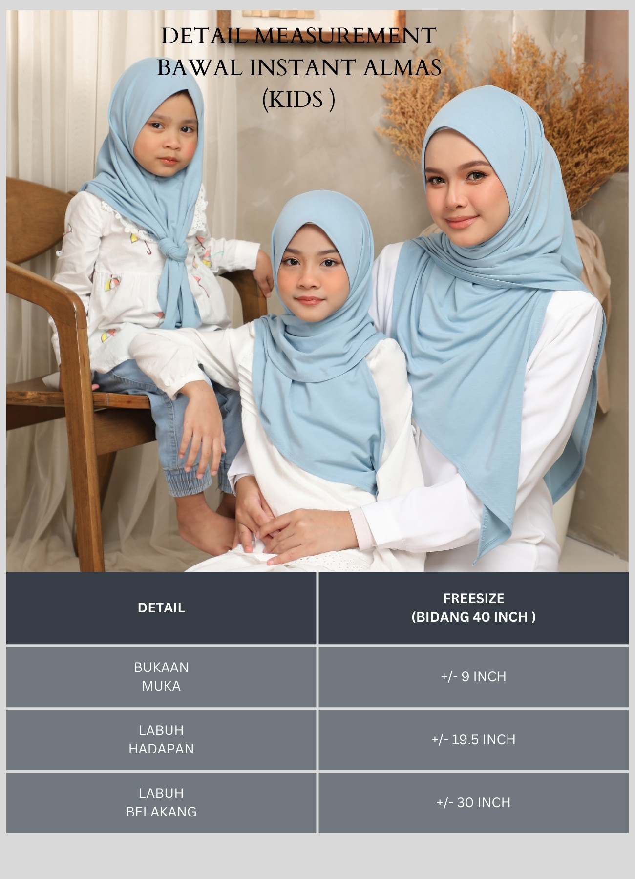This AMINIE HIJAB TUDUNG BAWAL INSTANT ALMAS COTTON is a versatile square hijab perfect for a casual and relaxed look. 2 variants which is adult and kids.