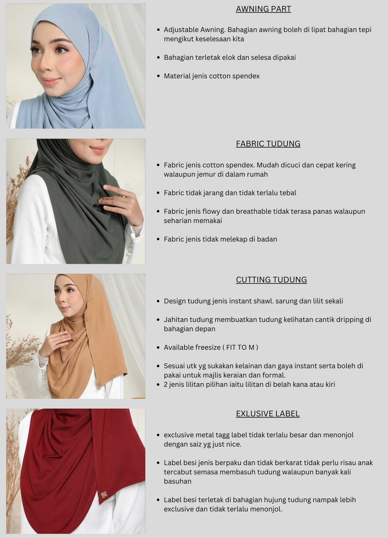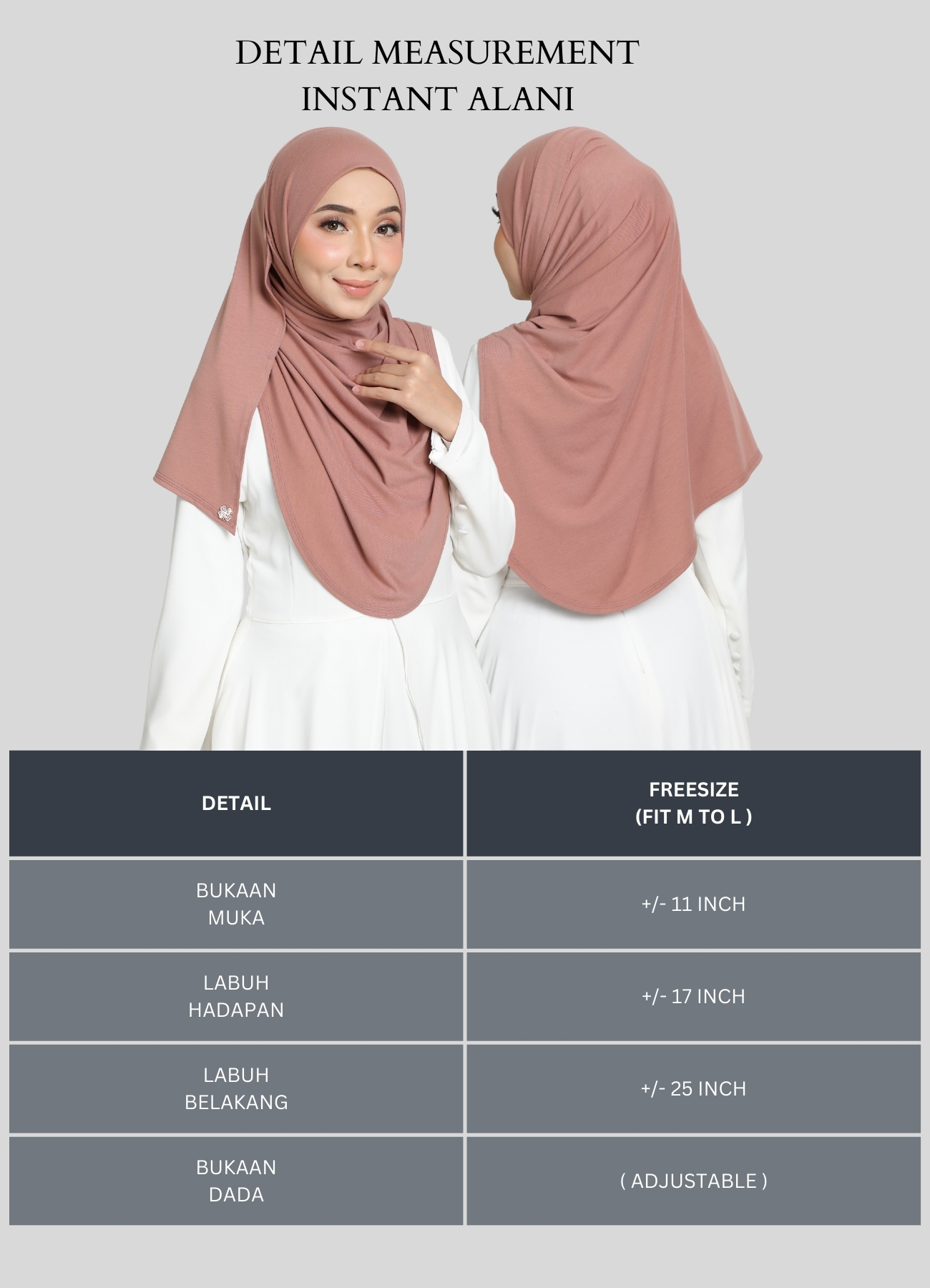 This AMINIE Hijab Tudung Instant Shawl Alani is a versatile shawl look hijab perfect for Muslim fashion enthusiasts. Made from comfortable cotton spandex fabric, it offers a stylish and convenient way to complete your outfit.